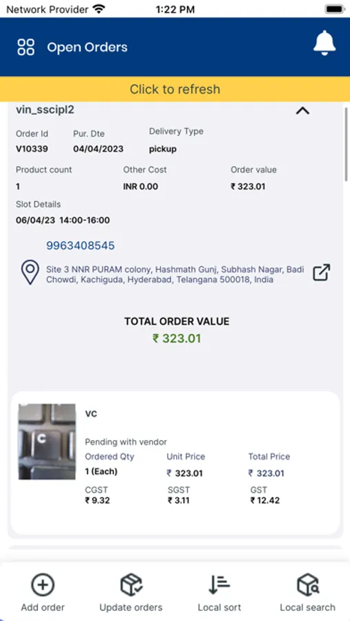 - an Order Tracker to check on the orders placed with vendor