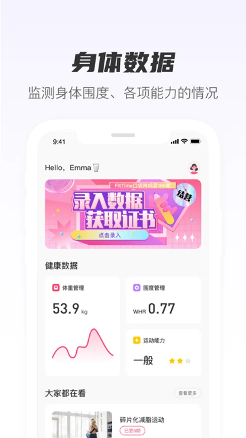 --体重、体脂、BMI、唯独、生理期、孕期、食物热量……为您保存各种重要健康数据,实时查询。