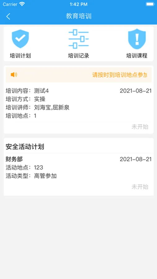 安全培训管理包括培训签到、培训签退、在线学习、学时统计等