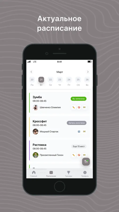 - Записаться на групповые тренировки;