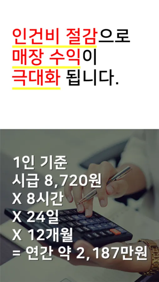 인건비 절감으로 매장 수익이 극대화 됩니다.