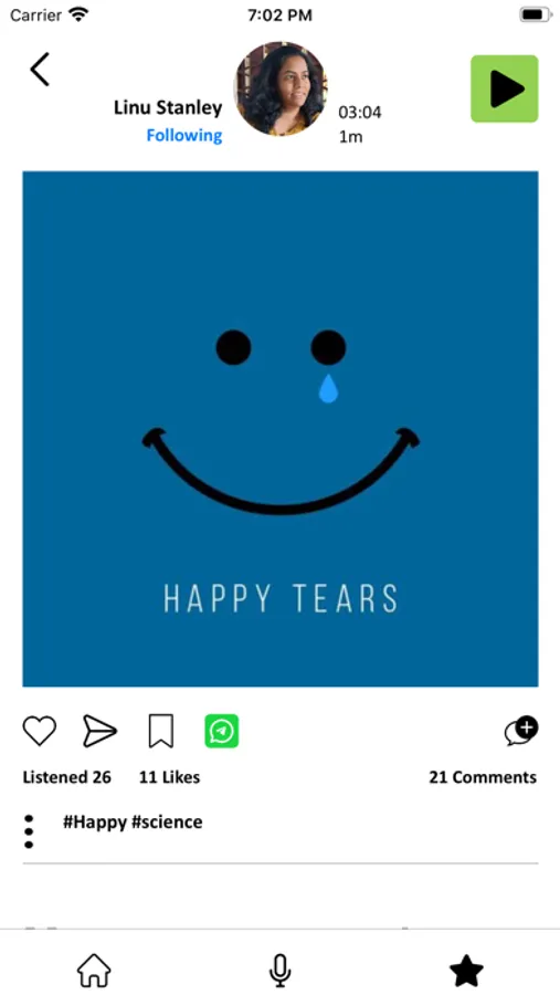 With SpeakApp, you can easily record your updates and thoughts in your own voice and share them with your friends, family, followers, and thousands of other people worldwide. Whether you're sharing your latest musings, updates on your life, or want to connect with others on a deeper level, SpeakApp is the perfect platform for you.