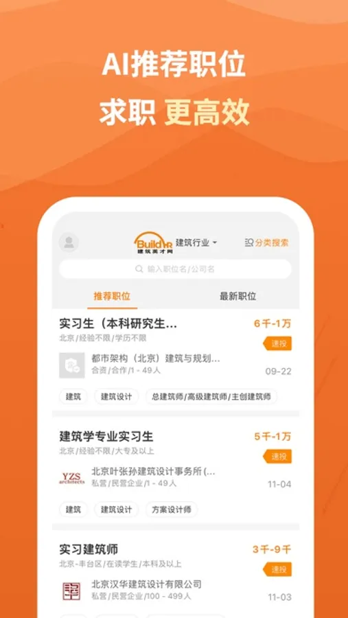 「AI智能推荐」通过智能算法匹配,推荐适合职位