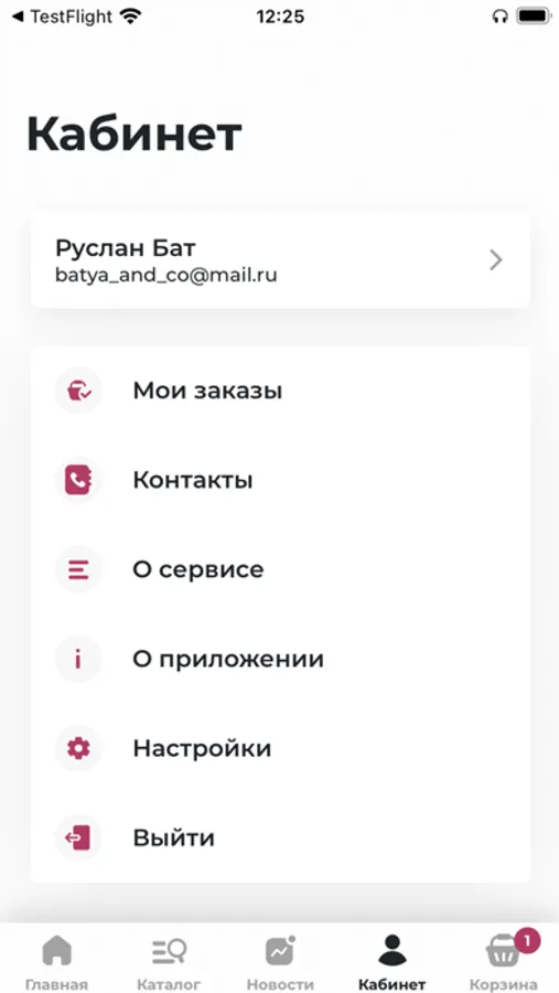 • В приложении доступен личный кабинет для просмотра истории заказов с возможностью их повторения