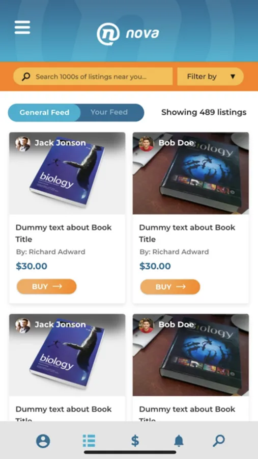 see all listings of items being sold within your area by other students, to the “Your Feed,”