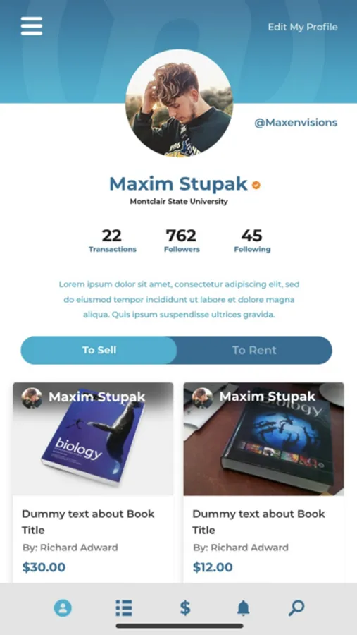 picture, university’s name, profile picture, and option to make a personalized bio. This is