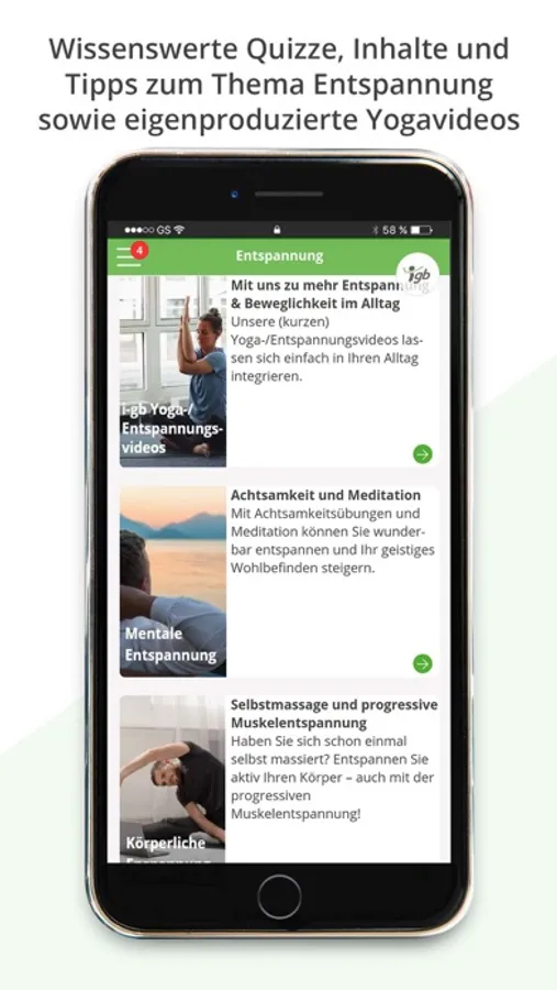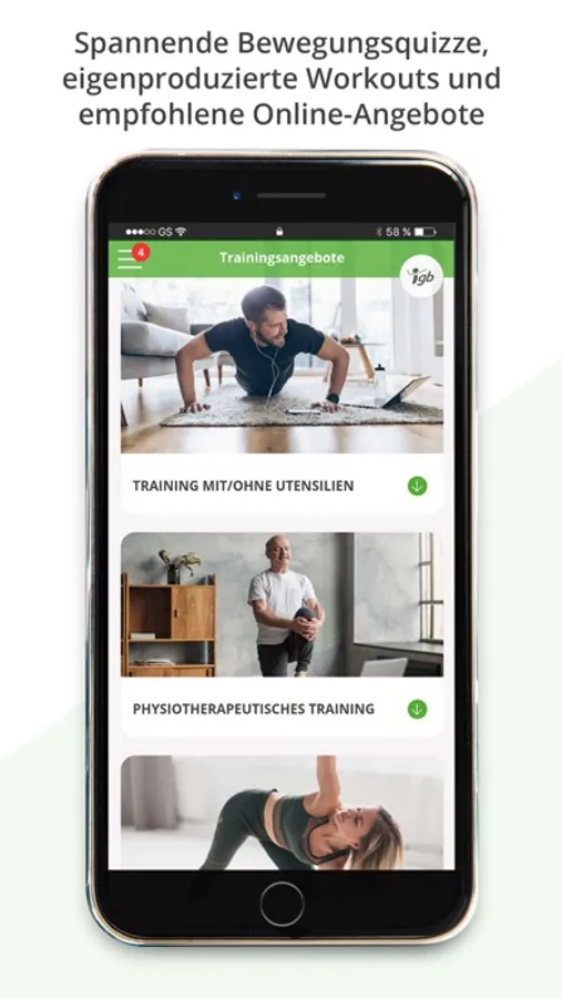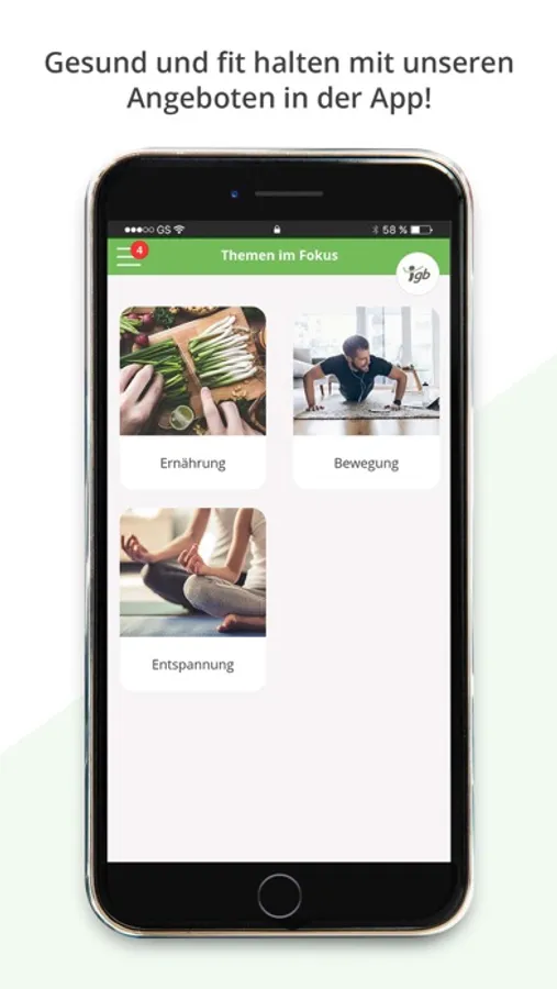 Sobald Sie die i-gb Card von Ihrem Arbeitgeber erhalten haben, können Sie sich mit Ihren persönlichen Zugangsdaten in unserer App einloggen und alle Gesundheitsangebote nutzen.