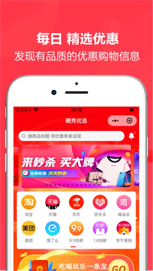 拥有晒秀优选APP,衣食住行、吃喝玩乐,随时随地轻松省钱购物,省钱省时!