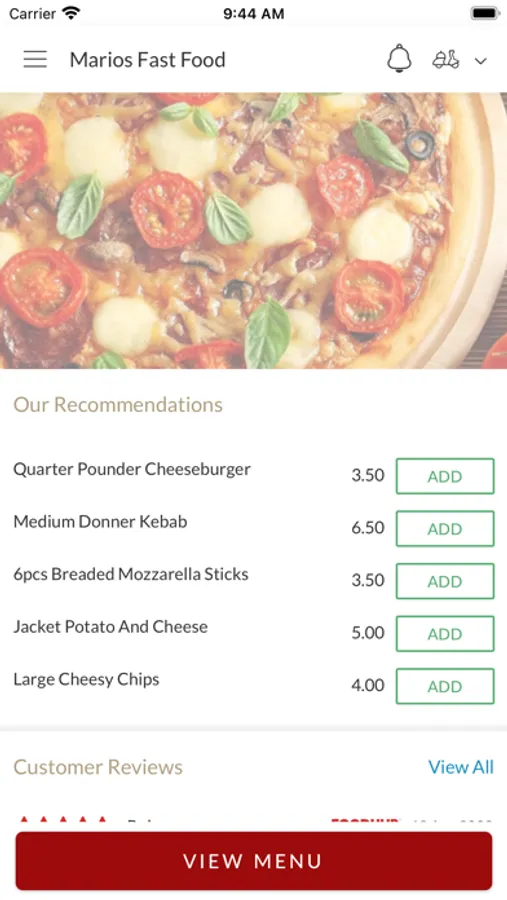 Here at Marios Fast Food, we serve a variety of food such as pizzas, burgers, wraps, kebabs and more.