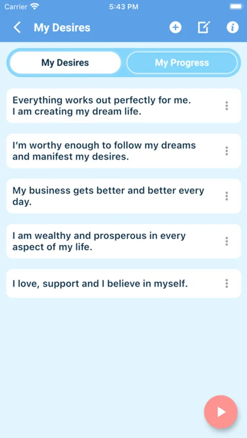 - Set your personal music to visualise your desires, affirmations and vision board.