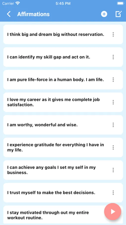 => Affirmation : Affirmations are powerful tool to get your desires fast. The app has some powerful collection of affirmations. You can also create your own affirmations. Select your affirmations and play these affirmations daily to feel positive and get motivation.