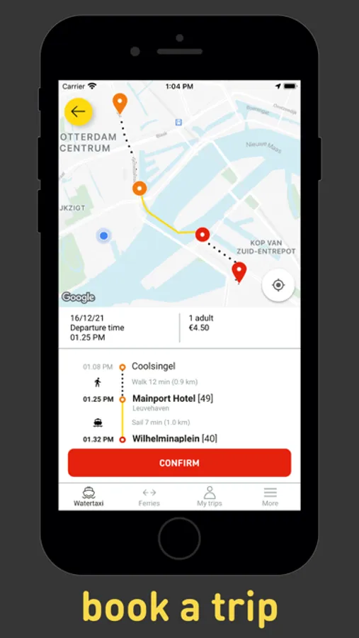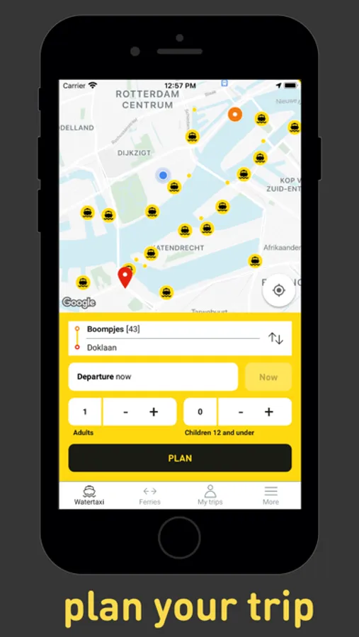 The quickest way to travel is to use our app. You can use it to plan and book your journey in advance. And of course while you are en route. It will tell you immediately within how many minutes the next water taxi will arrive at the desired stop.