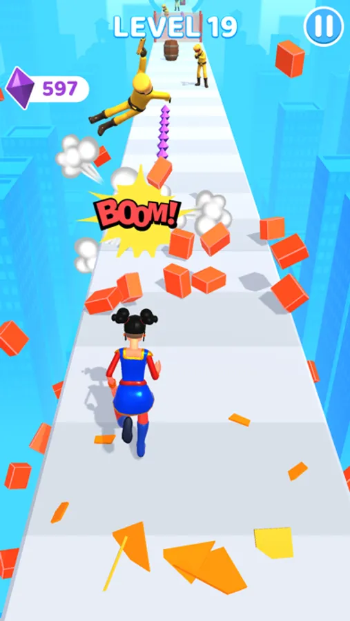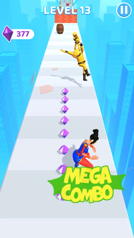 You have big fists with which you punch obstacles and enemies that come your way. Don't break the beat and punch everything. Don't forget to collect diamonds.