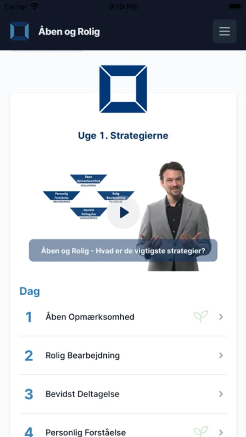 Kurset rummer 20 sessioner af 15-20 min. Du bliver guidet med små videoer, meditationer og andre værktøjer.