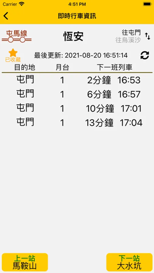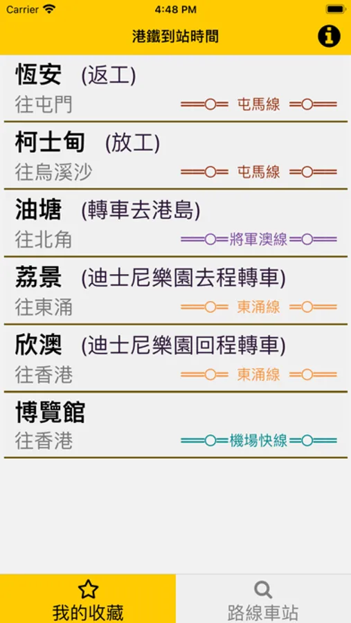 *. 可以將你最常用的車站(連同行車方向)收藏及命名,以便隨時查詢