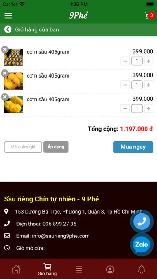 Sầu riêng chín tự nhiên 9 Phẻ chính thức xuất hiện trên thị trường từ năm 2017, hiện nay 9 Phẻ đã cung ứng sầu riêng đến tay người tiêu dùng thông qua hệ thống siêu thị và các cửa hàng tại Hồ Chí Minh, Hà Nội, …