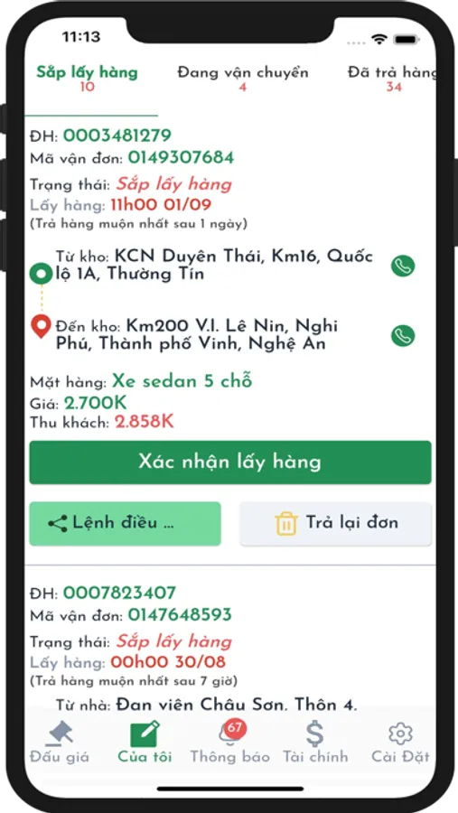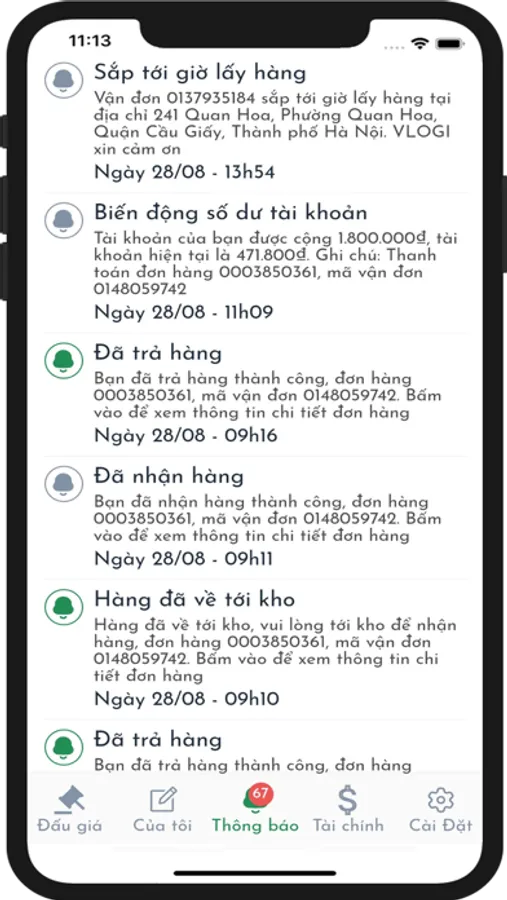 + Quản lý trạng thái vận đơn