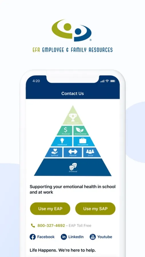 Mental health has gone mobile with the Employee & Family Resources app! Connect instantly using our chat feature to schedule an appointment with a masters-level counselor. Explore your Employee Assistance Program or Student Assistance Program at the push of a button with our easy-to-navigate app. Stay up to date on our blog, listen to our podcast, and register for webinars instantly.