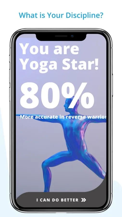 Giving you two challenges to perform, a fitness challenge and a yoga challenge, the app measures your performance and informs you which one you did better at.