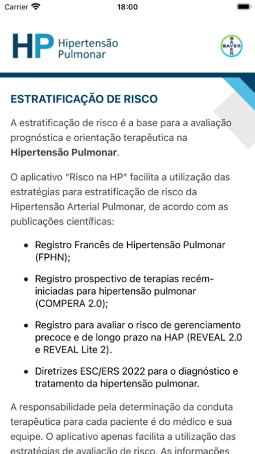 O aplicativo “Risco na HP” facilita a utilização das estratégias para estratificação de risco da Hipertensão Arterial Pulmonar, de acordo com as publicações científicas: