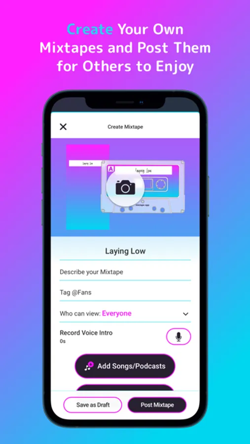 • Choose from original artwork to make your Mixtape beautiful, or upload your own photos to make your mixtape totally unique.