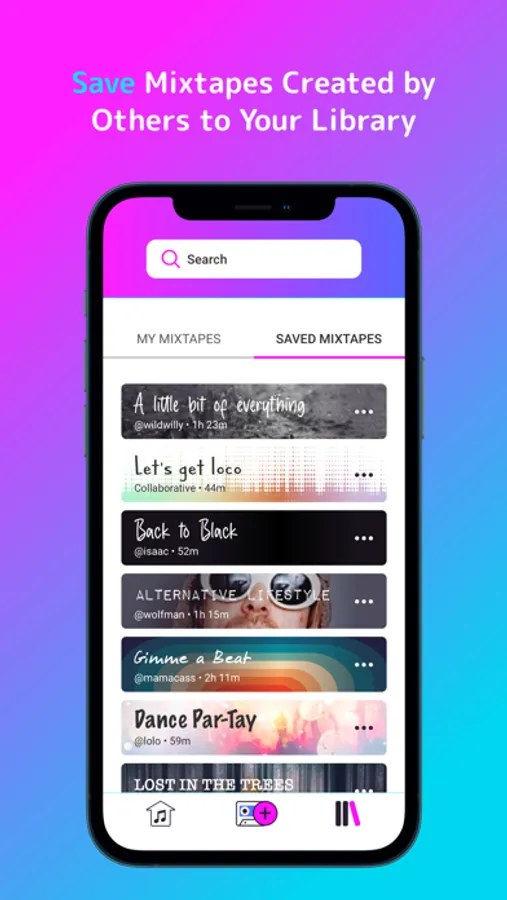 • Build a collection of your own Mixtapes and other people’s Mixtapes that you've saved.
