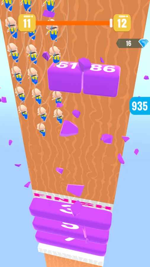 Plan the right combinations on the boosters, multiply your crowd, destroy the obstacles and reach the finish with the maximum number of pickaxe guys!