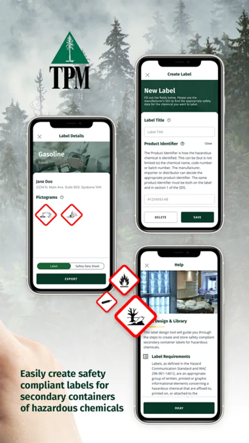 Easily create, print and store chemical labels for immediate or secondary containers that contains all of the Hazard Communication required label elements including: Name, Address and Telephone Number; Product Identifier; Signal Word; Hazard Statement(s); Precautionary Statement(s); Pictogram(s) and any necessary supplemental information.