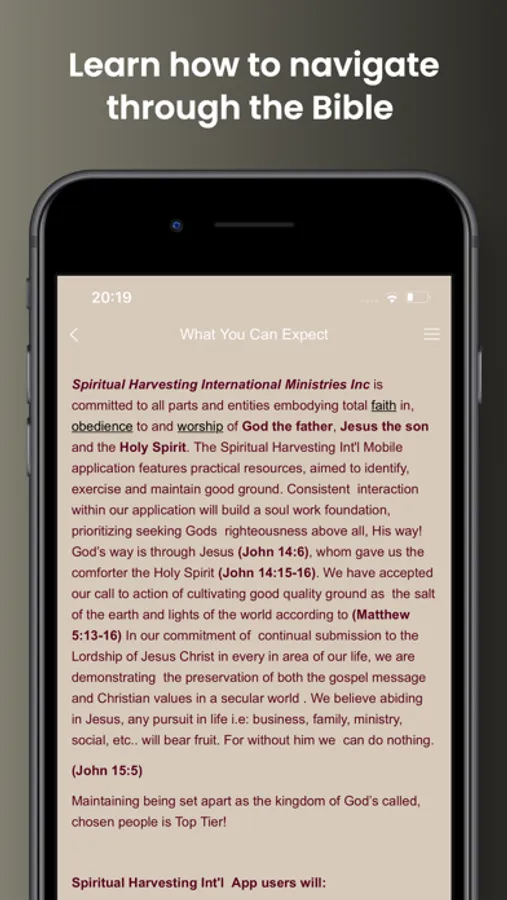 Spiritual Harvesting Int'l Ministries. is committed to all parts and entities embodying total faith in, obedience to and worship of God the father, Jesus the son and the Holy Spirit. The Spiritual Harvesting Int'l Mobile application features practical resources, aimed to identify, exercise and maintain good ground.