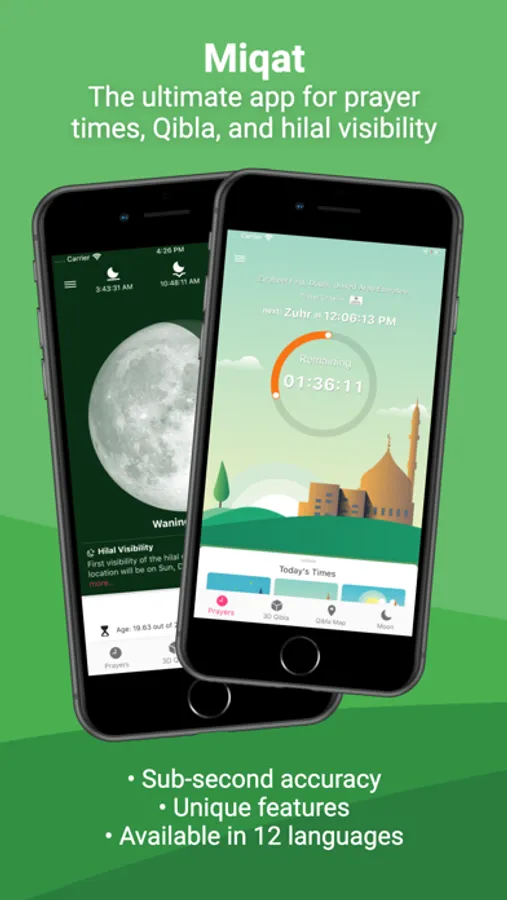 Welcome to Miqat: the ultimate app for prayer times, Qibla, and hilal visibility.