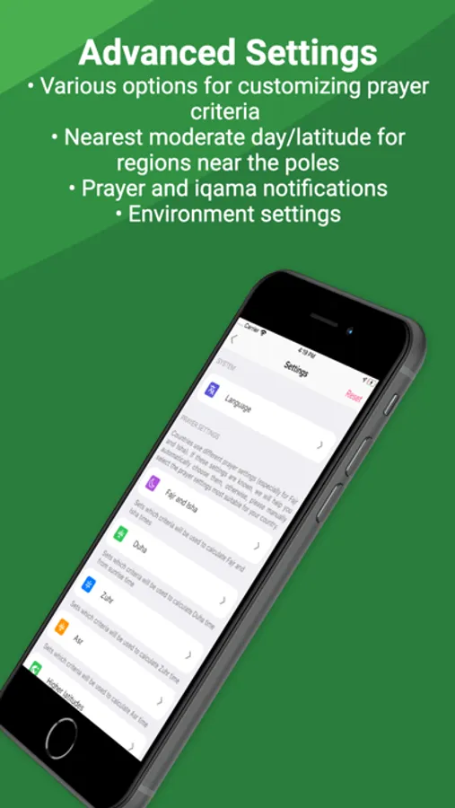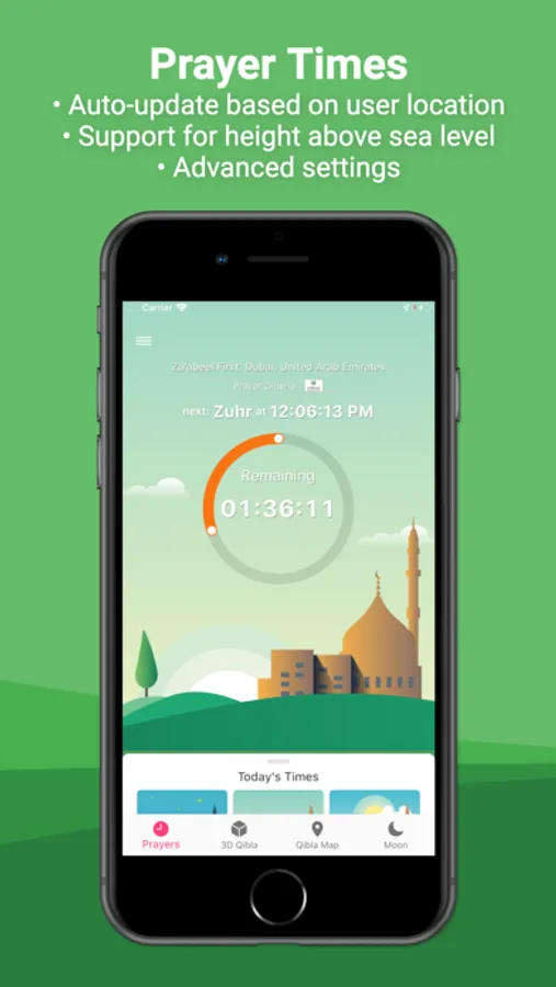• Advanced Calculations feature uses atmospheric pressure, temperature, and device height above the sea level to calculate prayer times and hilal visibility in a higher level of accuracy for users living in skyscrapers and mountains.