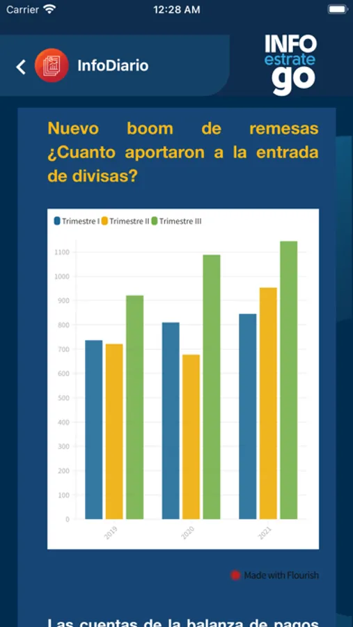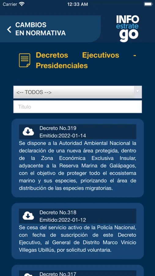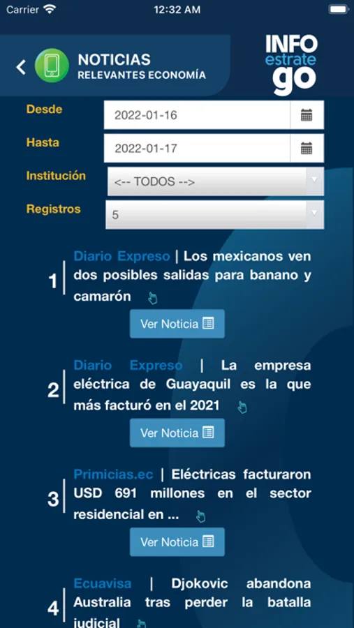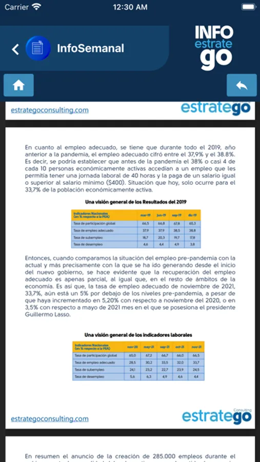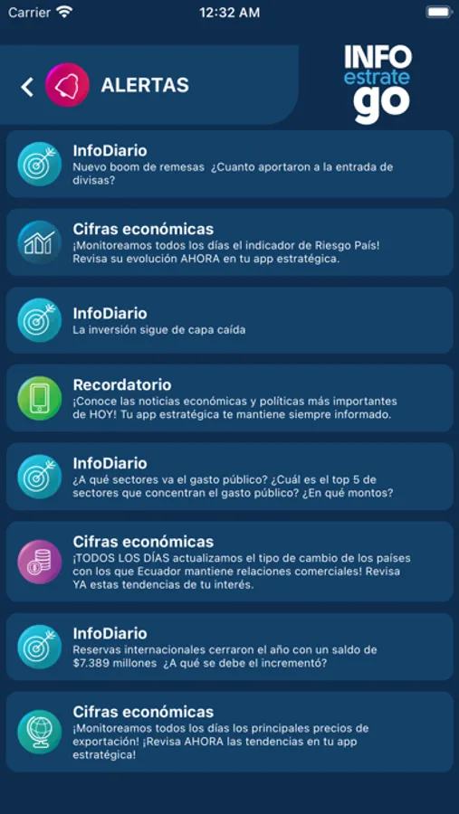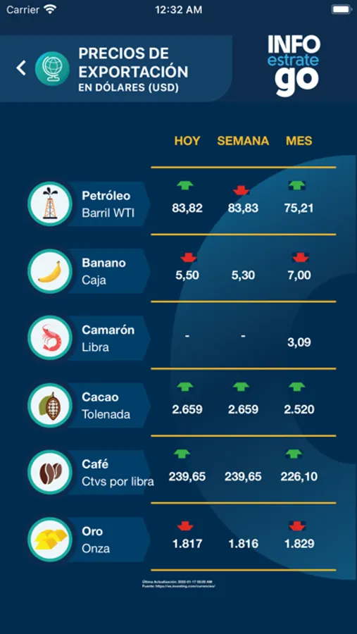 InfoEstratego te permite tener una mejor comprensión de los distintos indicadores macroeconómicos. Hacer un monitoreo de los principales precios de exportación y tipos de cambio de los socios comerciales de Ecuador. Dar seguimiento a los costos de financiación. Estar al tanto de la actualidad en el ámbito noticioso de la economía y política ecuatoriana. Recibir alertas sobre los impactos en los cambios en la normativa vigente: decretos ejecutivos, leyes aprobadas y leyes en trámite. Acceder a informes de carácter estratégico con el fin de tomar decisiones PRO: Precisas, Relevantes y Oportunas.