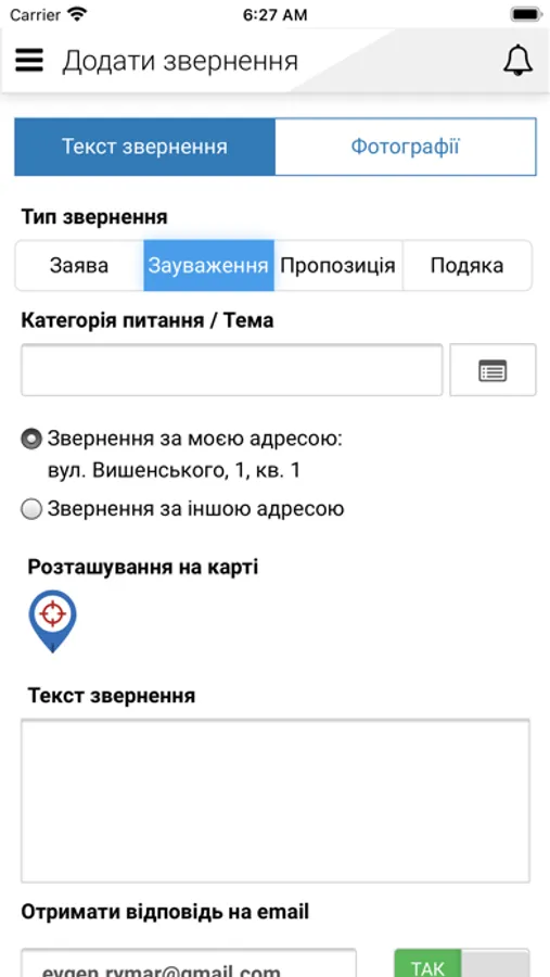 - отримувати повідомлення міських комунальних служб що стосуються Вашого будинку
