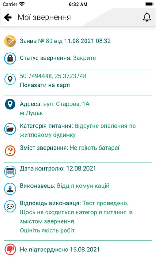 - підтвердити або спростувати фактичний результат опрацювання звернення та оцінити якість робіт.