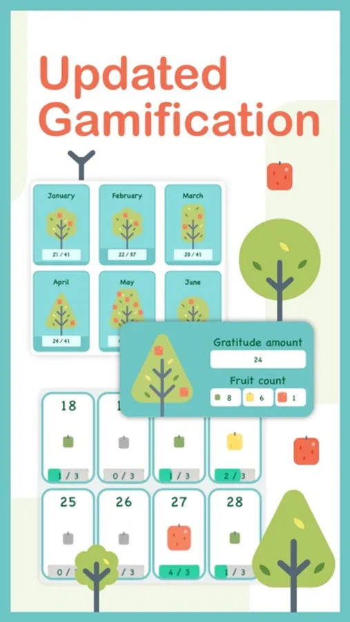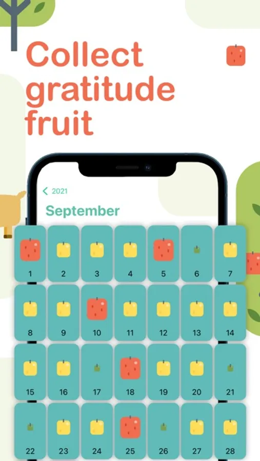 Every month, you will receive a seed that you can plant and let it grow into a gratitude tree. Each day that you input anything you are thankful for, a magic fruit will appear on your tree. Over time, you will amass a forest full of gratitude trees and fruits, which is a visual reminder of all the good things in life.