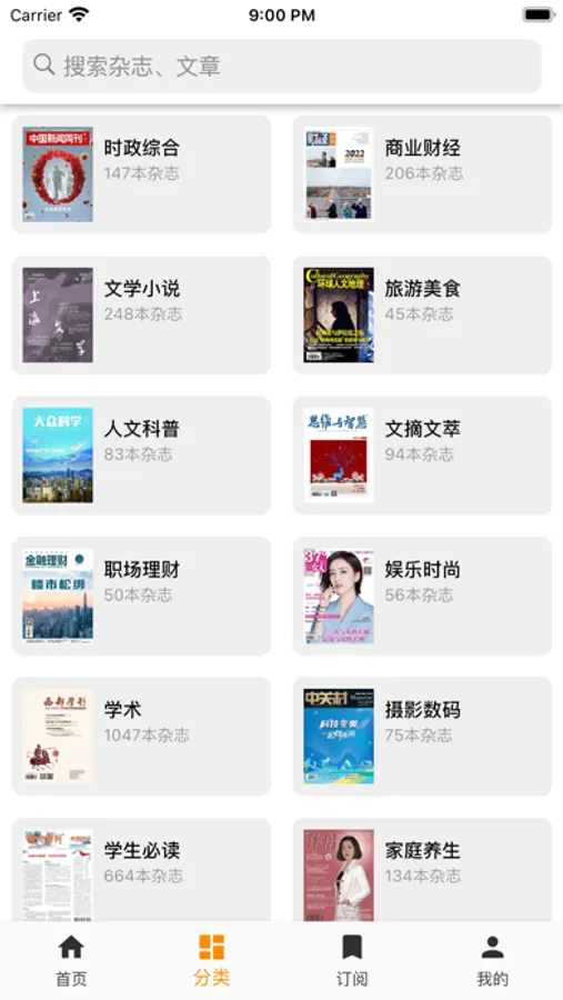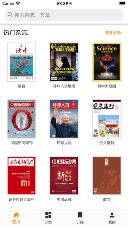 杂志天下囊括了时政、科学、艺术、军事、人文、教育等各个种类的杂志,用户可以阅读任何自己想看的杂志,诸如读者、意林、知音、故事会等都可以轻松查询到,你不仅可以阅读最近一期内容,而且最近几年的往期内容,你都可以直接阅读。