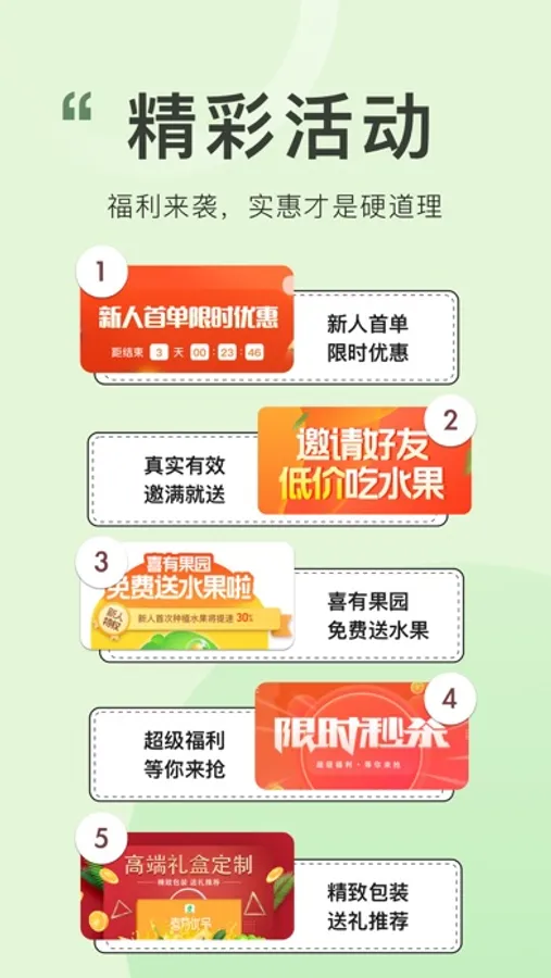 喜有果园、限时秒杀、超值折扣等一大波福利来袭,实惠才是硬道理!