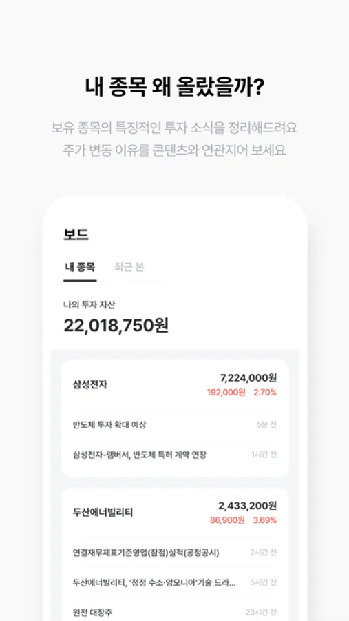 보유 종목의 주가 변동 이유를 소식과 연관지어 보세요