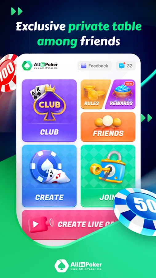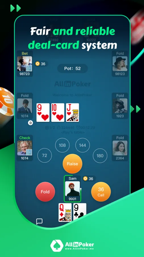 AllinPoker is built by a fun and professional development team. The product is completely safe, fair, reliable, and self-developed. We value users' experiences and focus on feature optimization to provide the best poker experience. With the simple interface in AllinPoker, you can quickly create or join the game you want. There are no pop-up ads or complicated function settings, so you will have a super cool product experience. It even comes with a Player-Feedback section which is constantly optimized to meet the various needs of players in an innovative way. We are dedicated to providing players with a safe, fair, simple and fun poker gaming experience.