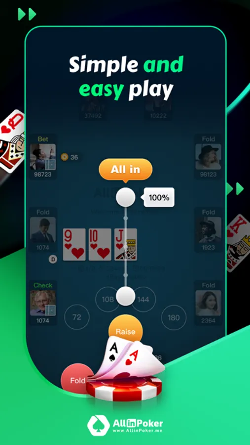 AllinPoker is a neccessary choice for every Texas Hold'em player. Whether you want to practice, challenge friends or simply play a poker game recreationally, AllinPoker has you covered. You can play on the go anywhere, any time, all from the comfort of your own phone.