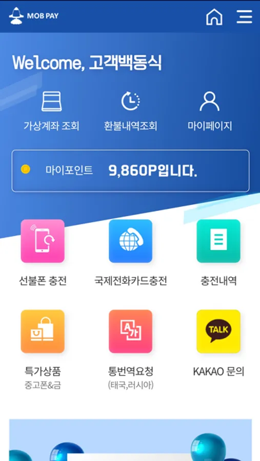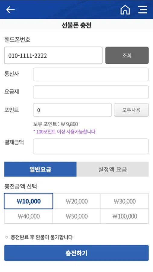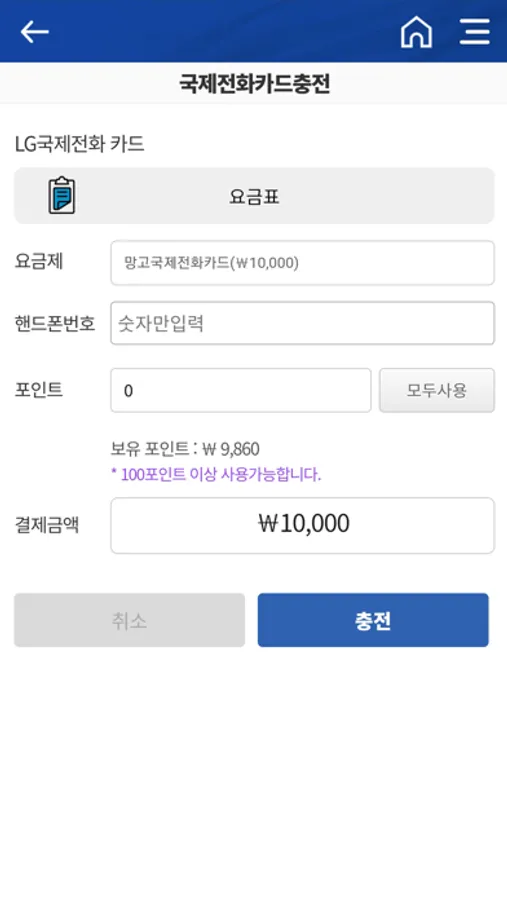 한국에서 사용하는 선불요금충전, 국제전화카드충전 가능 앱입니다