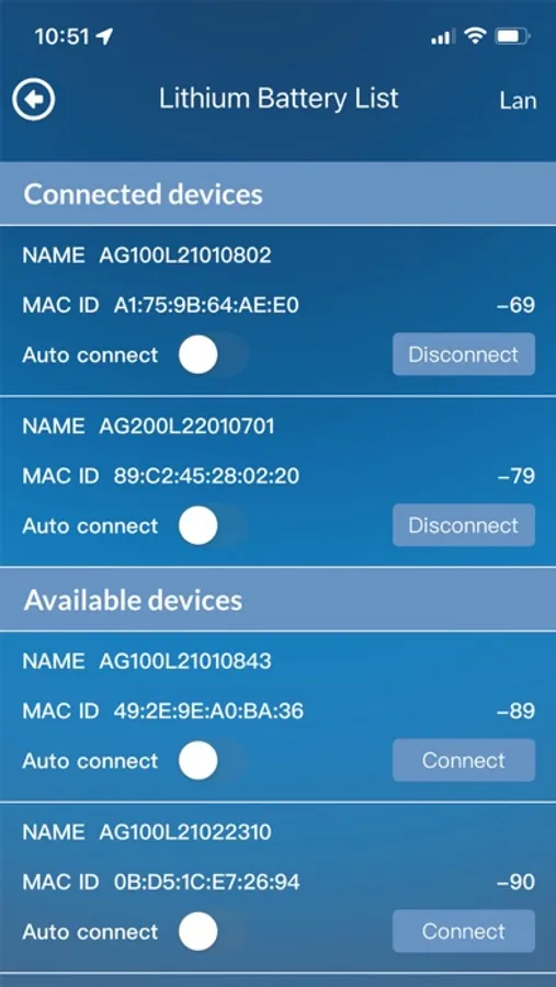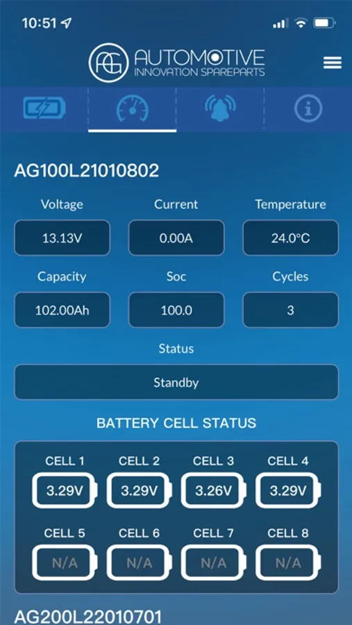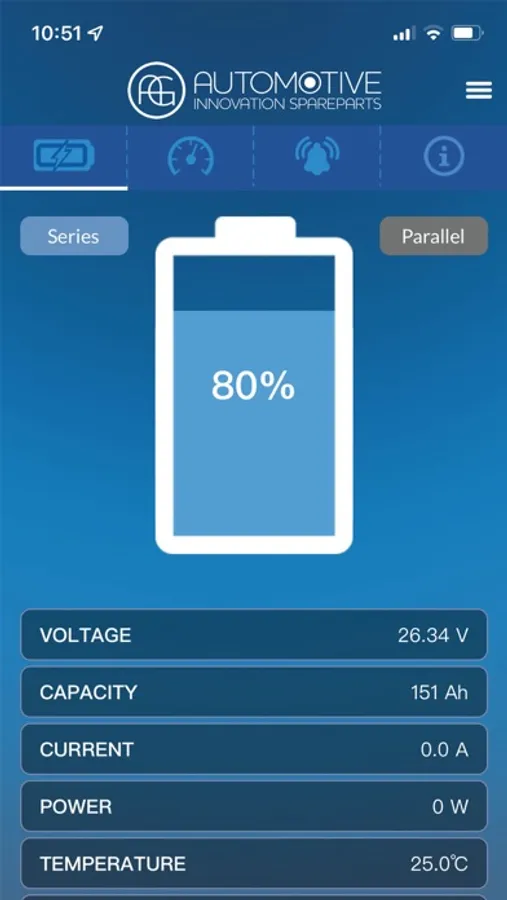 With this app, the current status of the AG POWER LITHIUM battery can be easily monitored via Bluetooth. Within a radius of 5m, one battery is currently linked to the app.