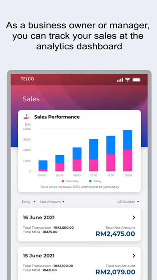 GATES Biz will help the business owner to keep track of Daily, Weekly and Monthly Sales or to perform reconciliation anytime. The app also provides centralized information on collections and sales for you to analyze your business performance.