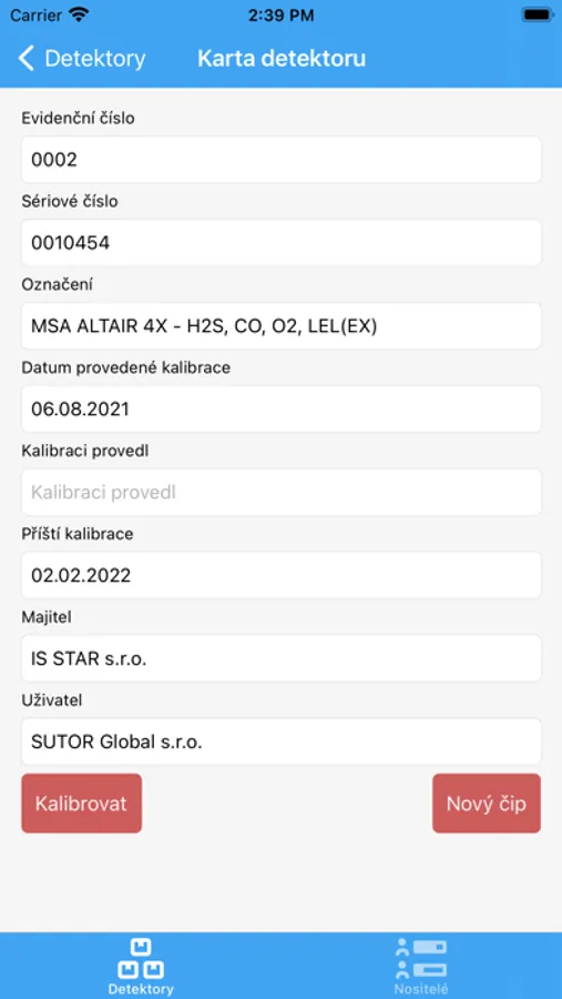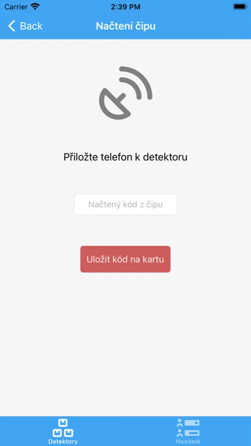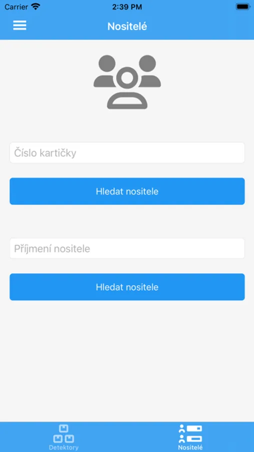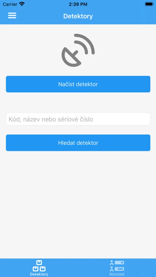 Aplikace je určena pro práci s databází detektorů. Umí hledat detektory podle NFC čipu, kódu. Dále pracuje s databází nositelů kde hledá podle čísla kartičky nebo jména a příjmení.