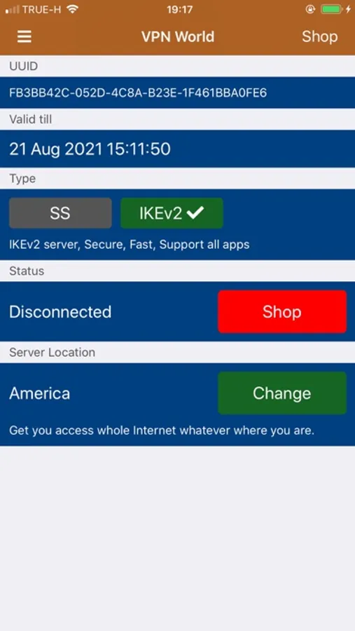 Can select many different fast server location, like America, Hongkong, Singapore, Japan, Canada, Australia, United Kingdom, Euro etc.