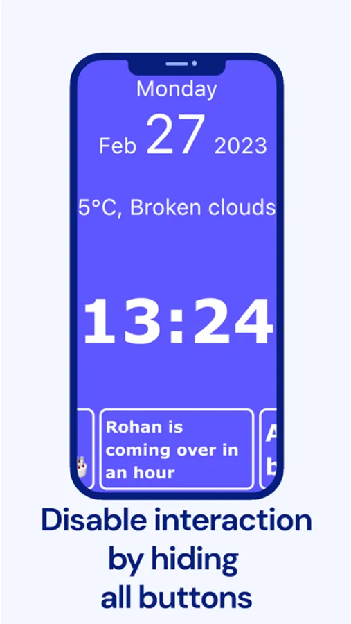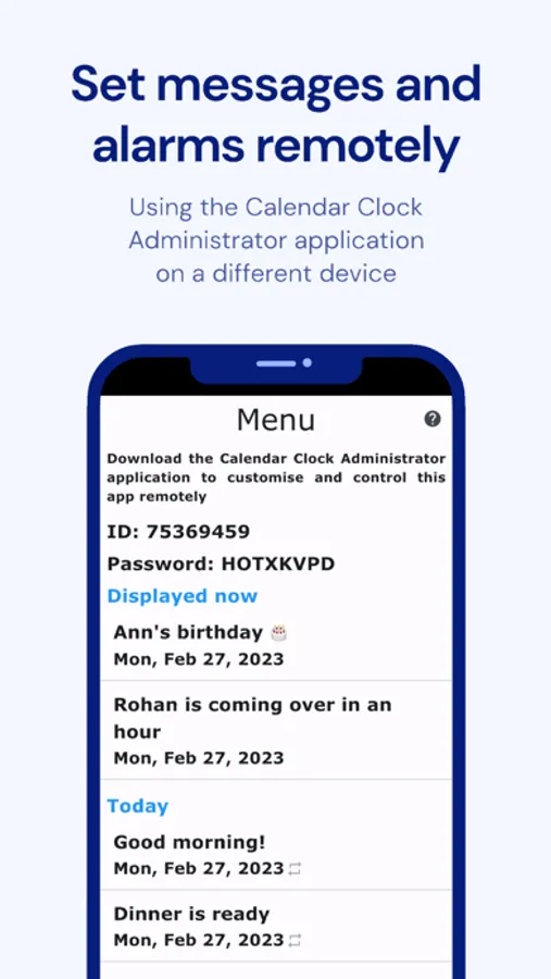- Administrator Connectivity: Enhance functionality by linking Calendar Clock with the dedicated "Calendar Clock Administrator" app. Caretakers, professionals, relatives, or friends can remotely schedule, edit, and delete messages and reminders, ensuring seamless coordination.