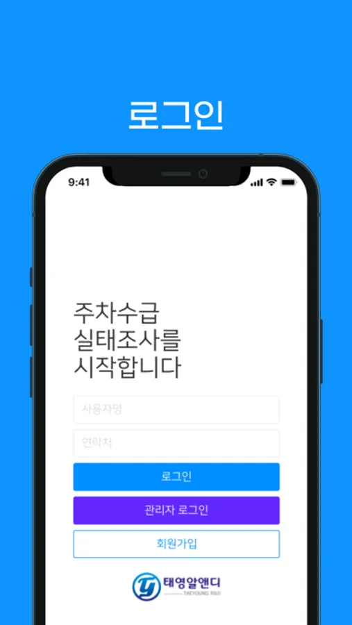 ● 이 앱을 사용하고자 하는 기관 또는 사람은 ㈜태영알앤디에 연락하여 “지역관리자”로 등록을 요청하여야 합니다.