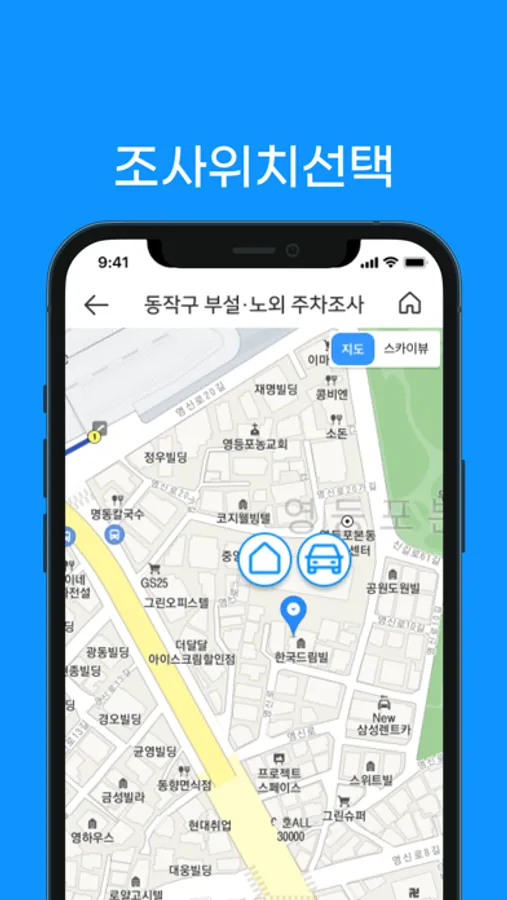 이런 문제를 해결하기 위한 주차실태조사앱은 특허를 등록(등록특허 10-2177306 주차수급실태 조사 시스템)하여 신뢰성 높은 조사부터 정확한 주차실태 분석까지 가능하게 제작되었습니다.