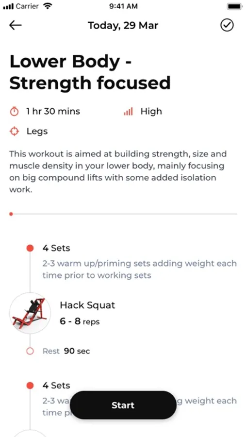 App also uses Apple Health to track energy burned and heart rate during a workout session, if an Apple Watch is used along.