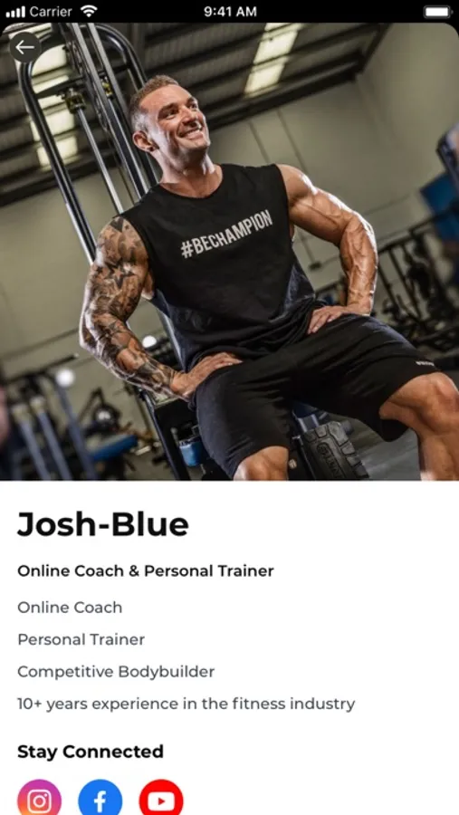 Sky rocket your fitness journey with #BECHAMPION COACHING. With me, Josh-Blue, you'll have the best combination of nutrition & exercises available on a single app, so there’ll be no more guess work, and with my knowledge and experience we’ll work together to achieve your ultimate fitness and lifestyle goals.
